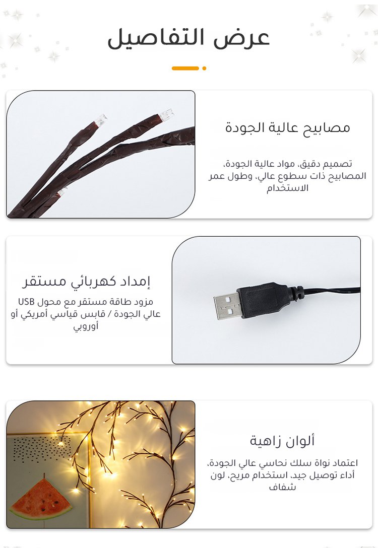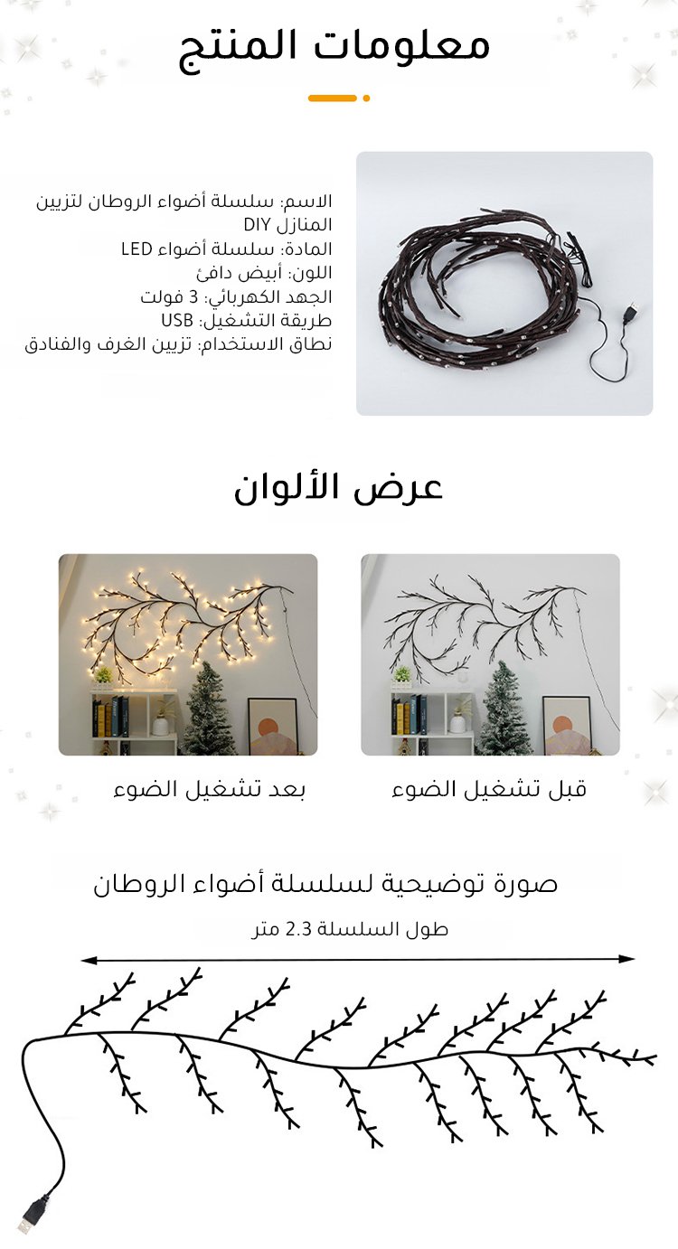 سلسلة أضواء الروطان LED على شكل أغصان موفرة للطاقة