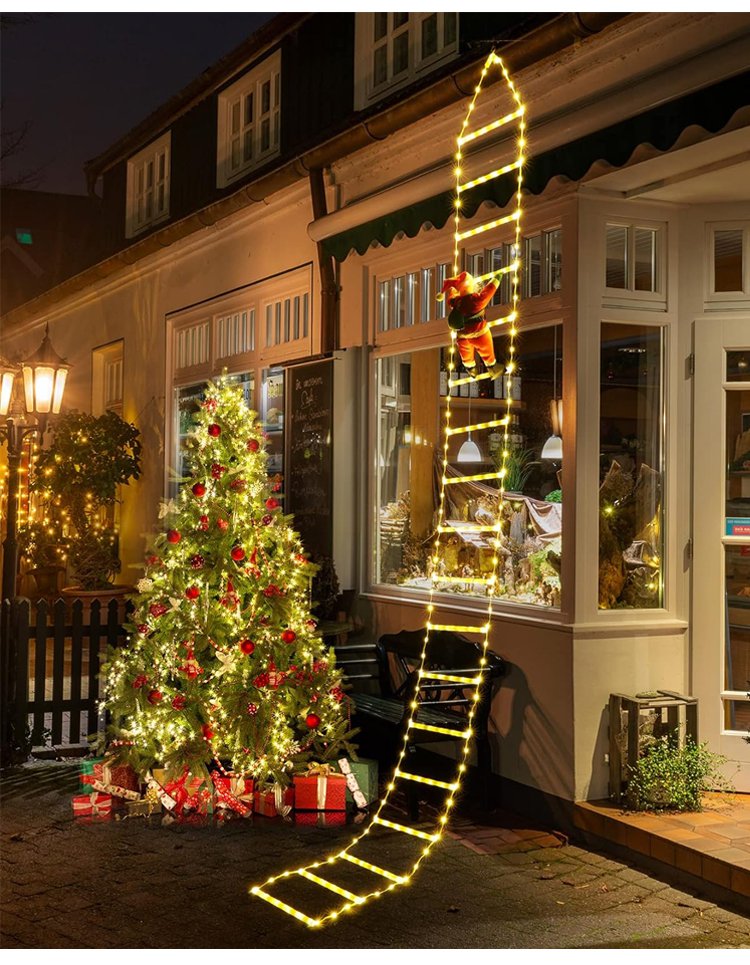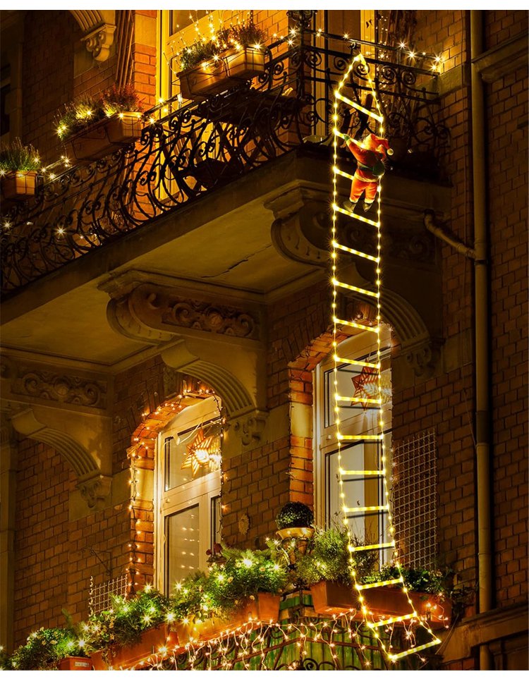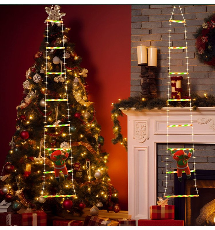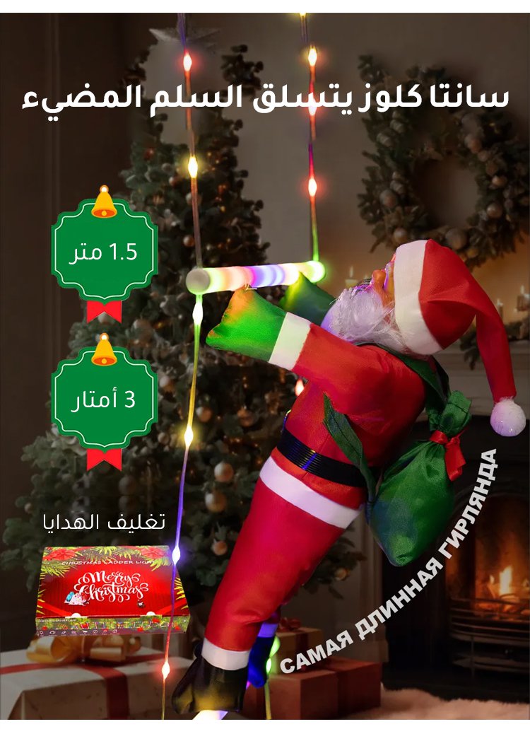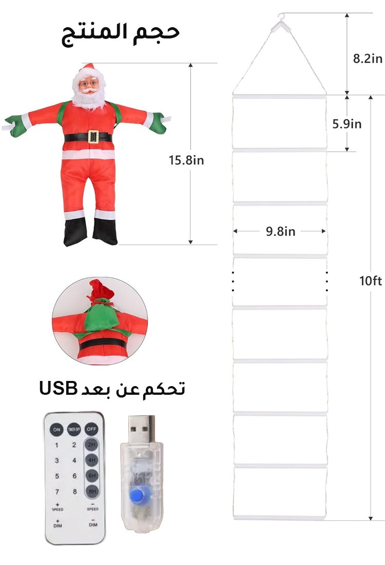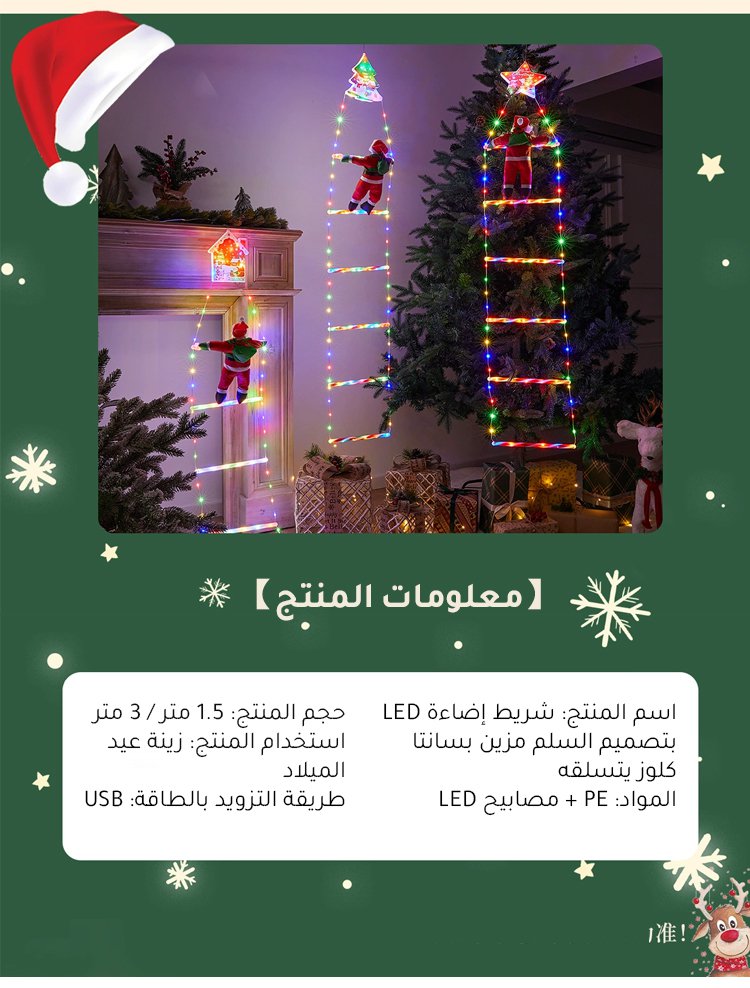 (عرض خاص لعيد الميلاد) شريط إضاءة LED بتصميم السلم مزين بسانتا كلوز يتسلقه