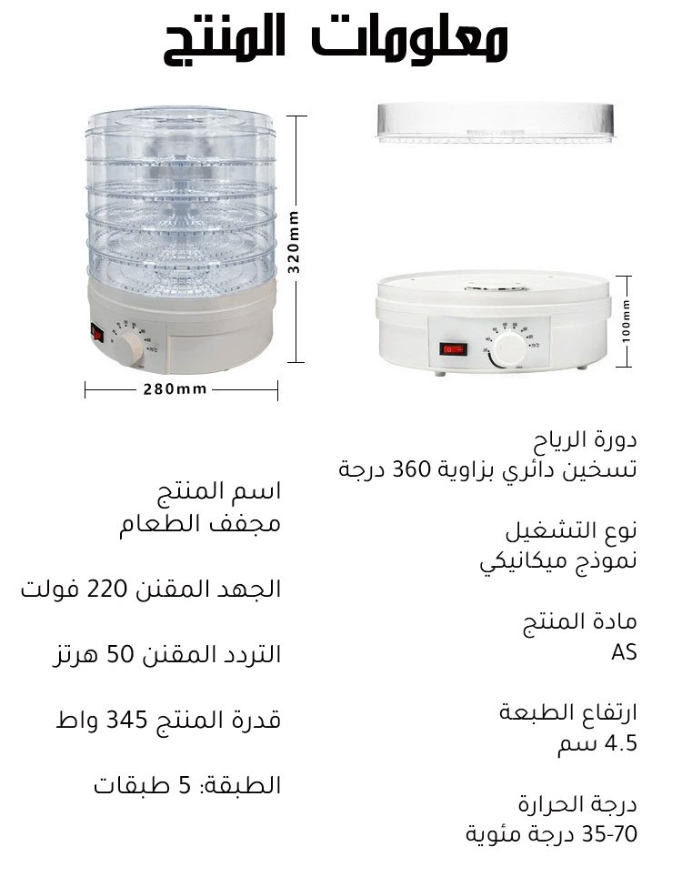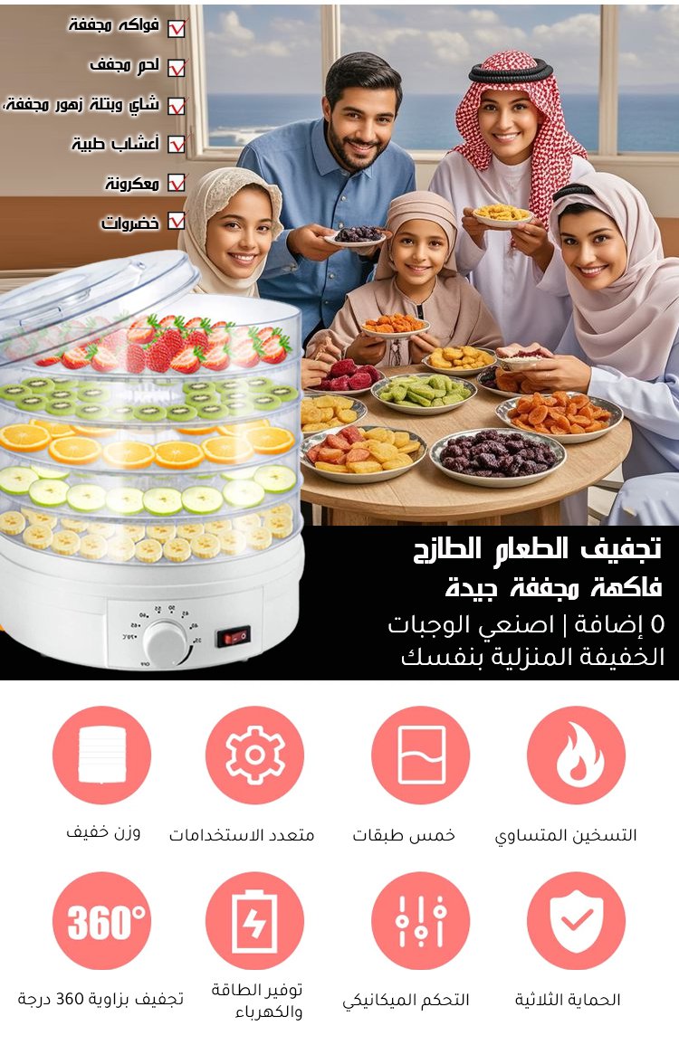 مجفف الطعام المنزلي المتعدد الوظائف، مناسب لتحضير للفواكه والخضروات واللحوم المجففة